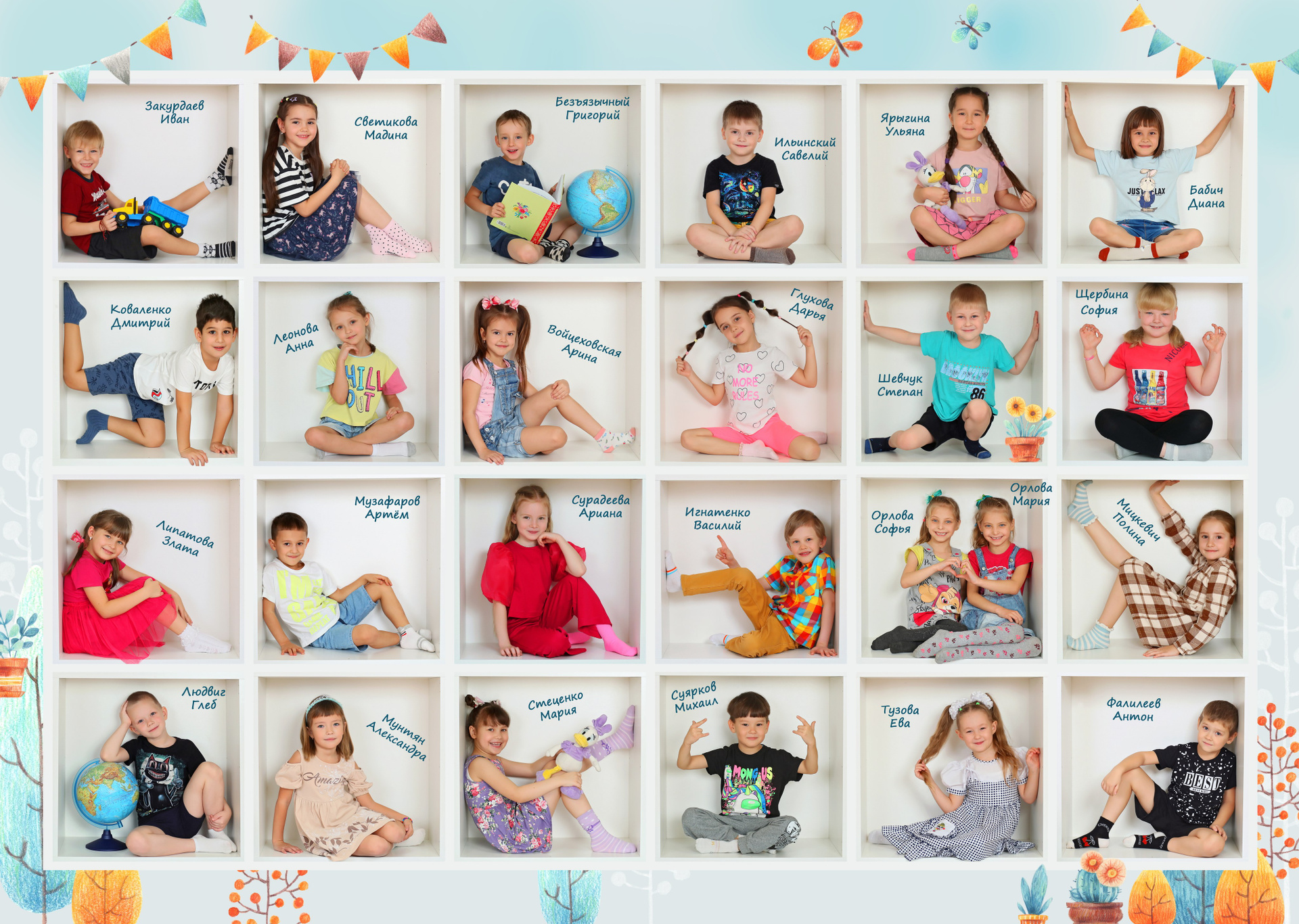 — Креативная общая фотография всех детей в КУБАХ. Воспитатели и администрация сада (по их желанию).