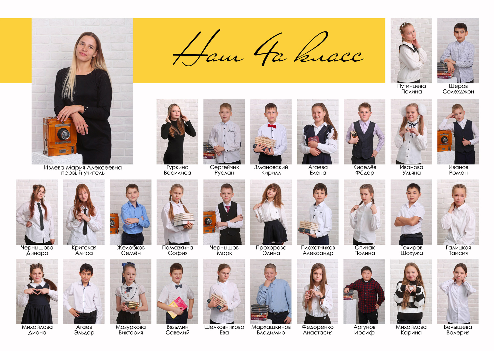 — Общая фотография всех детей в виньетках. Классный руководитель и учителя предметники (по их желанию).