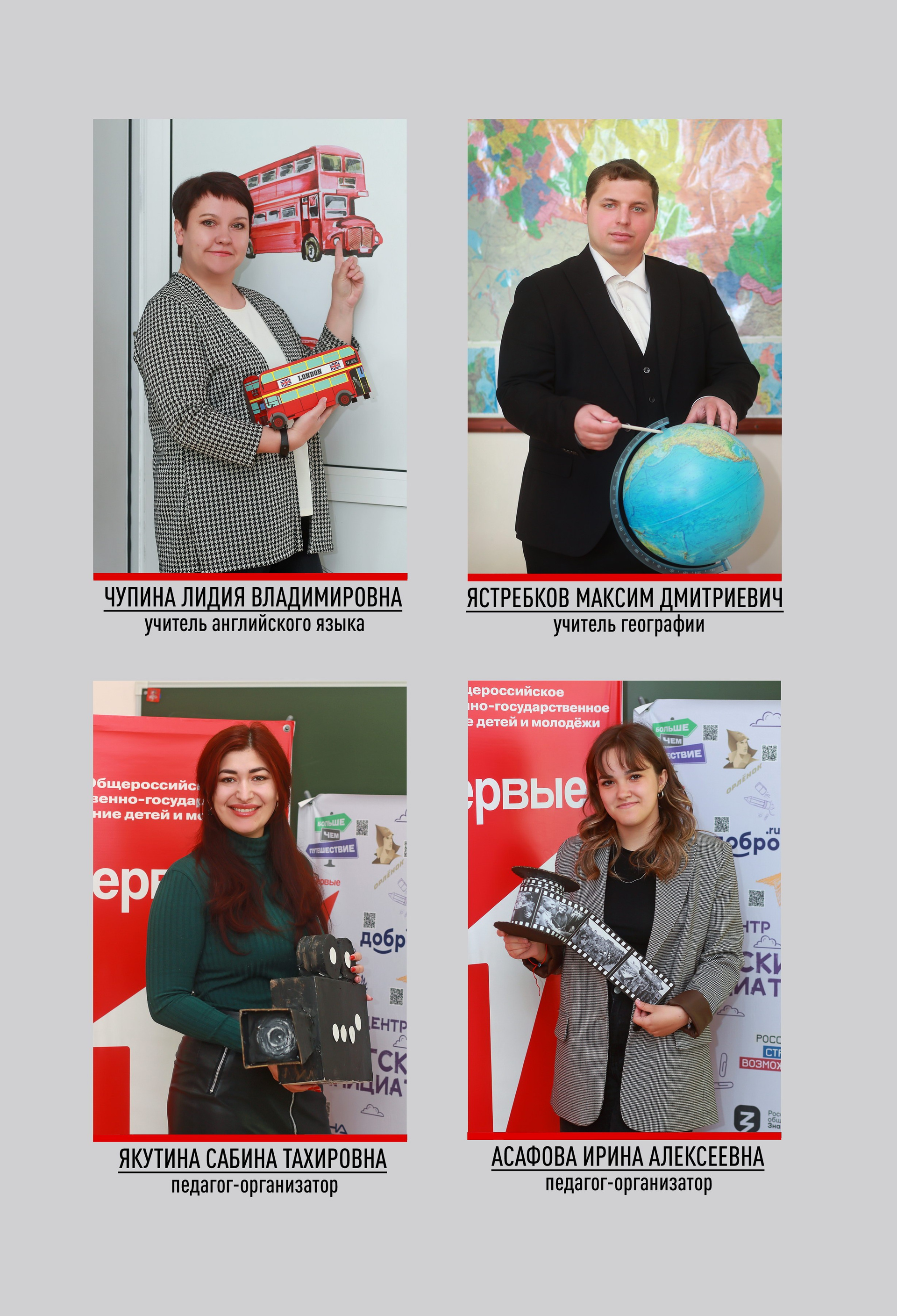 — Фото учителей (на фоне или рабочем месте по их выбору).