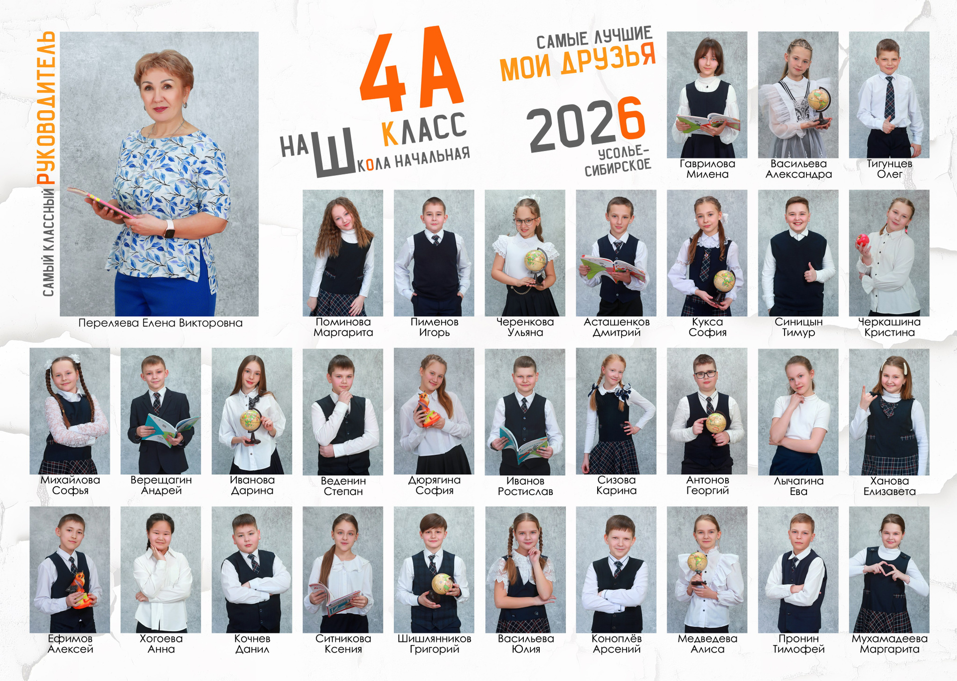 — Общая фотография всех учеников в виньетках. Классный руководитель и учителя предметники (по их желанию).