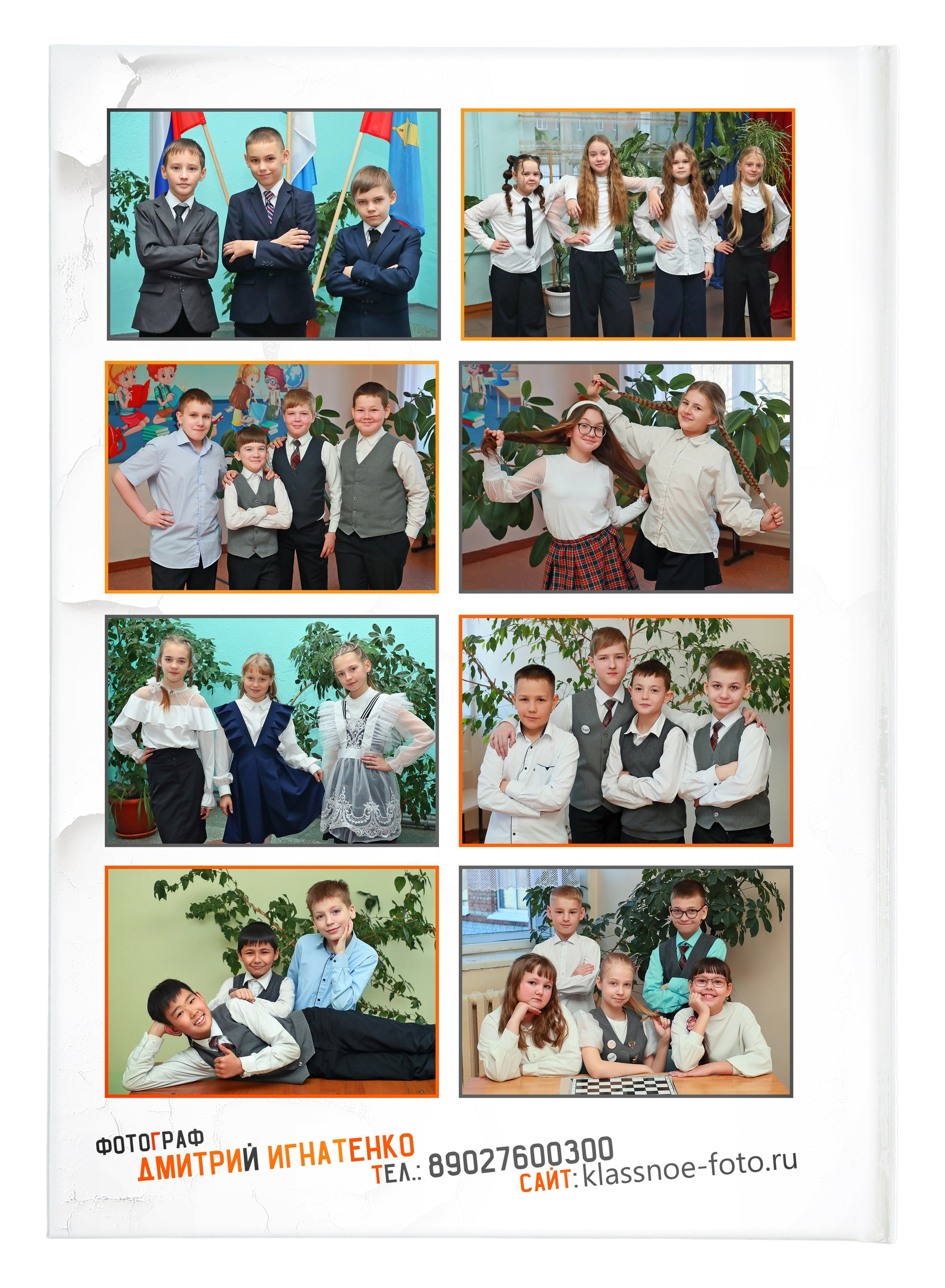 — Фотоколлаж с друзьям (одинаковый у всех) из 8 снимков на оборотной стороне фотокниги. Фото для коллажа выбирает -дизайнер.